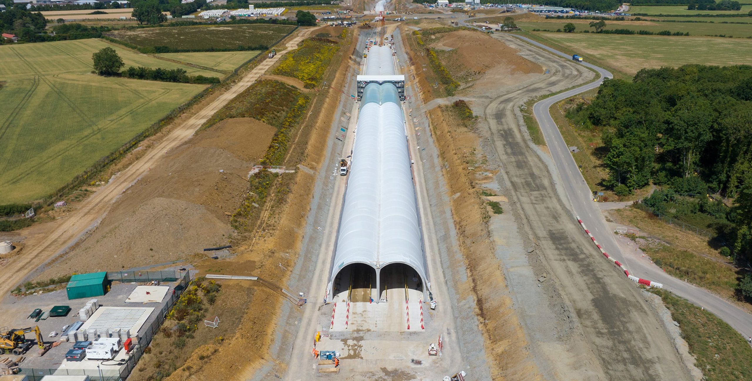 The ‘cut-and-cover’ tunnel is being built inside a cutting, with the earth put back on top afterwards, helping to blend the railway into the landscape and cut noise and disturbance for people living nearby. The shallow ‘green tunnel’ will also take HS2 trains under the realigned A361.