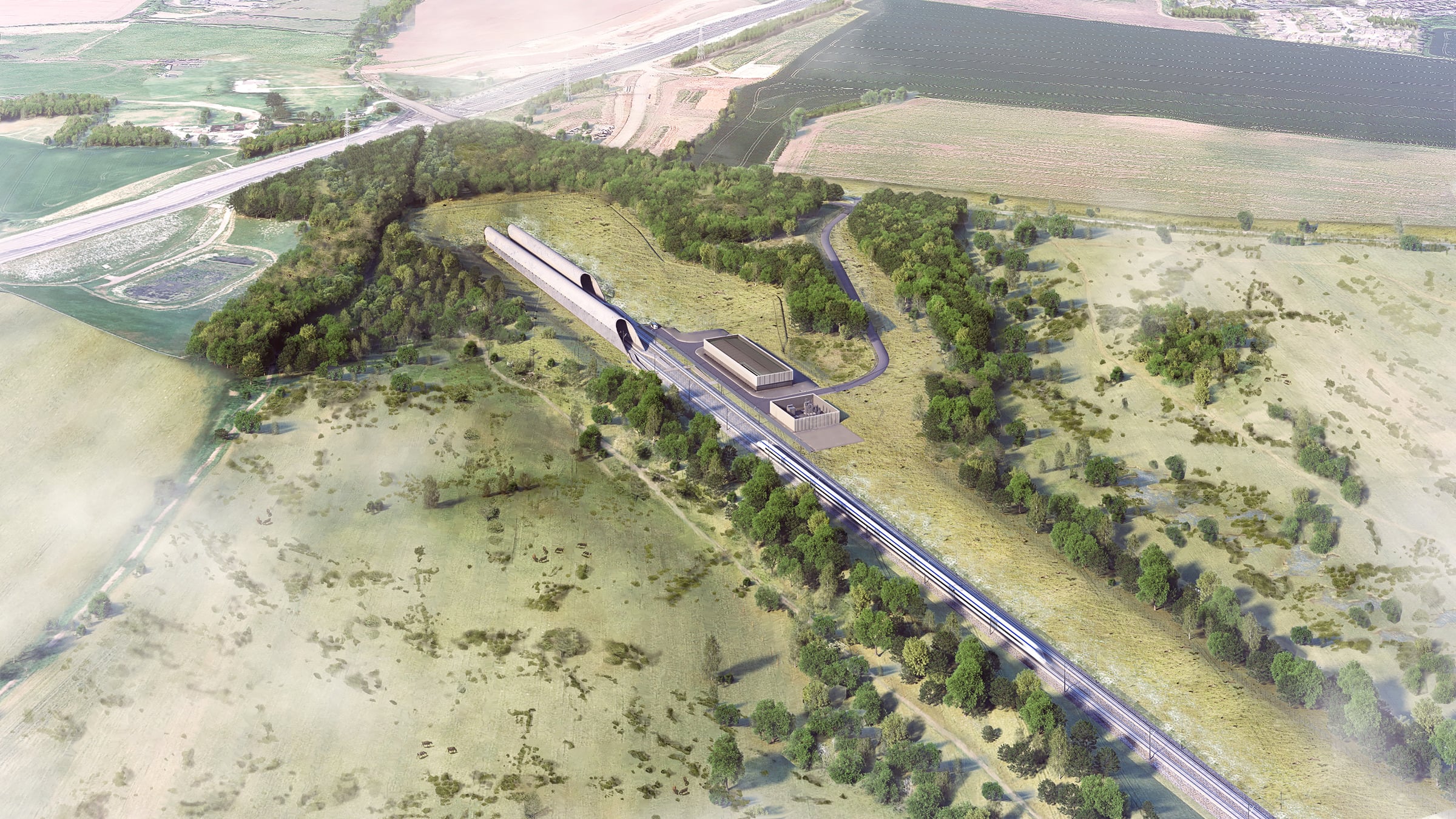 About 2.7 million cubic metres of material was removed during construction of the tunnels. This was used for landscaping around the south portal site.